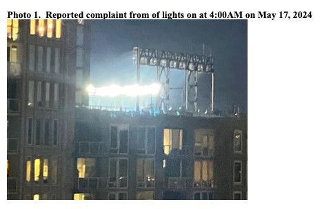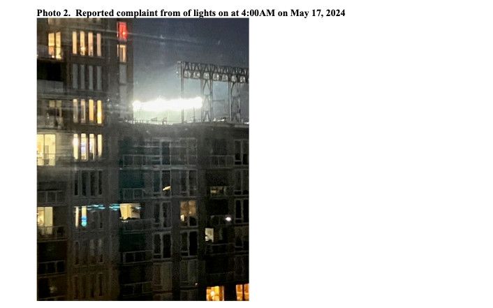 A montage of neighbors' photos can be seen in the above tweet, taken by South Beach resident Daniel Conrad, who lives right near the park. “I took the photos at 11:35 pm; 1:27 am; and 4:31 am,” he wrote in July to the Port of San Francisco, which has jurisdiction over Oracle Park. “The lights are very bright.”