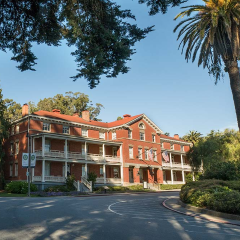 Nestled within the Presidio of San Francisco National Park, the Lodge at the Presidio is an upscale, luxury hotel overlooking the Golden Gate Bridge. A sister property of the Inn at the Presidio, the Lodge is a stately red-brick building that offers both old-world elegance and contemporary motifs throughout. Since 2018 guests have been escaping the hustle and bustle of downtown and using the Lodge at the Presidio as a base of operations for all kinds of adventures within the park, or as a launching point for a variety of San Francisco adventures.