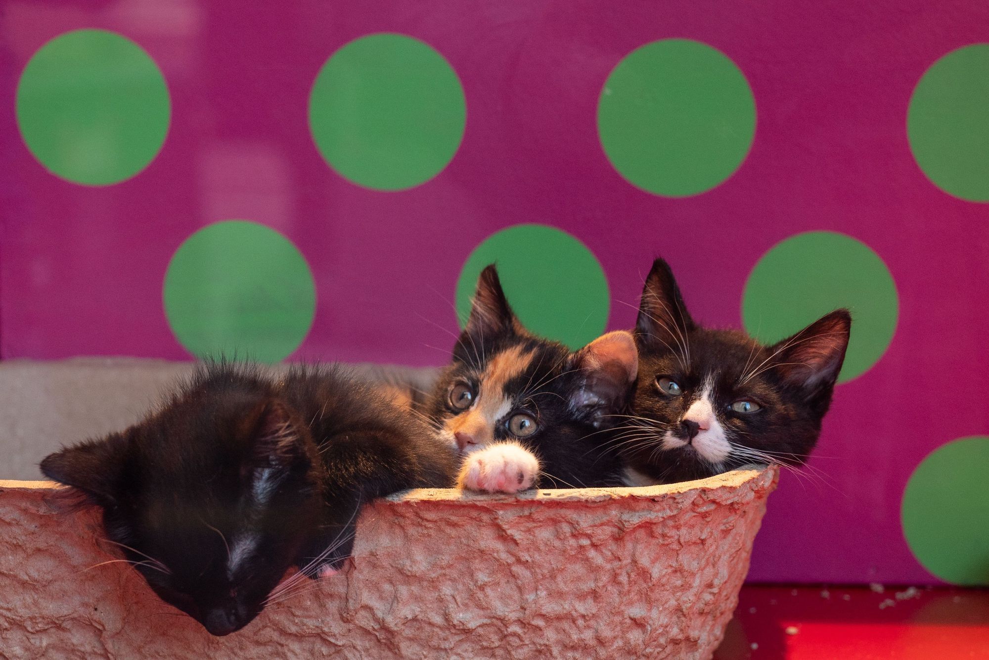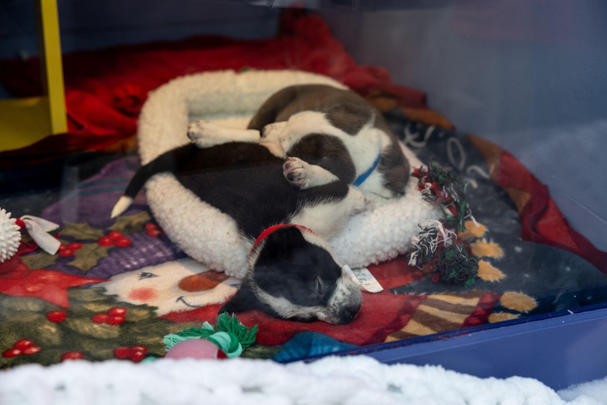 The five-and-a-half week holiday season window display is organized by the SF SPCA, who are in the business of finding homes for adoptable pets. And this year they’re running a special “Name Your Price” promotion in hopes of fostering as many adoptions as possible. (Though the puppies and kittens in the Macy’s window may not be a part of this promotion, as the SF SPCA says the Name Your Price deal is for “for all animals over 5 months old throughout the entire holiday period,” and the window animals may fall under that age range.)