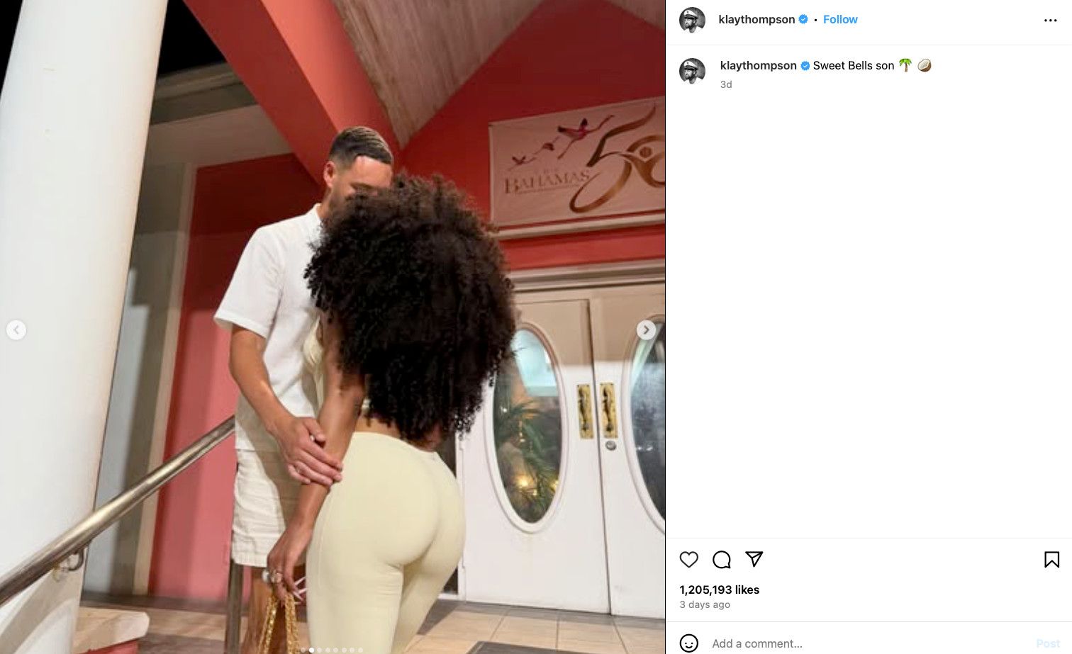 The above post is a screenshot from an Instagram carousel that Thompson posted Monday, in which it is fair to assume that he is kissing Megan Thee Stallion.