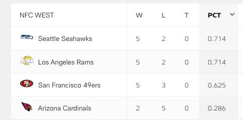 And so for the first time all season, the 49ers are no longer in first place in the NFC West. But they are currently only a half-game out of first place, and that thus-far undefeated record within the division is certainly going to come in handy as we head into November.