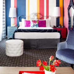 Brightly lit and retro-styled guestrooms are loaded with gadgets and modern trappings like flat screen TV’s, designer toiletries, and stuffed minibars. Choose to upgrade to a suite and your room will include a separate living area, and in-room spa treatments are always available by request. Guests can also experience Tratto, a family-style Italian eatery serving up a world-class selection of handmade pizza and pasta.