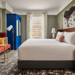 Hotel G is a stylish and mid-century modern 12-story hotel located just a block from Union Square. Established way back in 1909, Hotel G has been known for its modern, minimalist style that doesn’t sacrifice comfort for elegance. Each contemporary room features a minibar, Nespresso machine, and a massive 42-inch Smart TV.